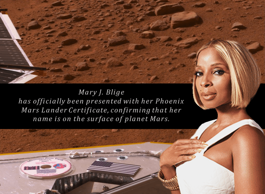 In February of 2007, the Robinson Family began submitting the names of writers, musicians, activists, aviators, and more aboard NASA’s Phoenix Mars Lander. In honor of Black History Month, the Robinson Family decided to pay tribute to Black American pioneers, heroes, trailblazers, innovators, and leaders by sending their names to be a part of this first ever digital library on Mars.